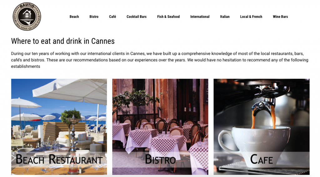 Fresh, light content and full of colour and movement, the showcase site for all the best restaurants and bars in Cannes.